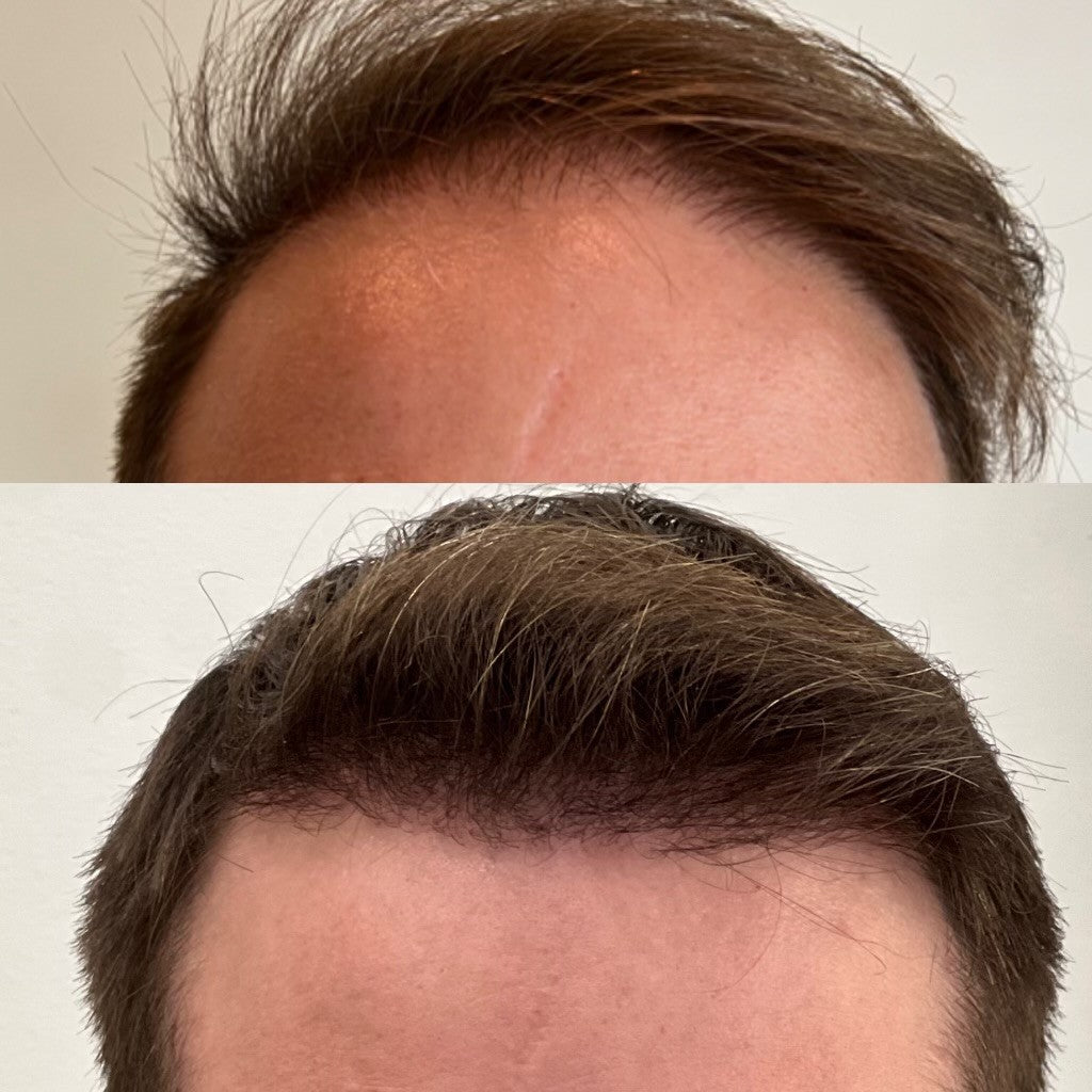 Although it isn’t common, the surgery may involve risks such as allergic reactions to anesthesia, scarring, hair shock loss, pain, and infection. Some patients may experience crusting, excessive bleeding, or folliculitis. It’s important to discuss these risks with Dr. Moussa and follow post-procedure care instructions to minimize complications.
